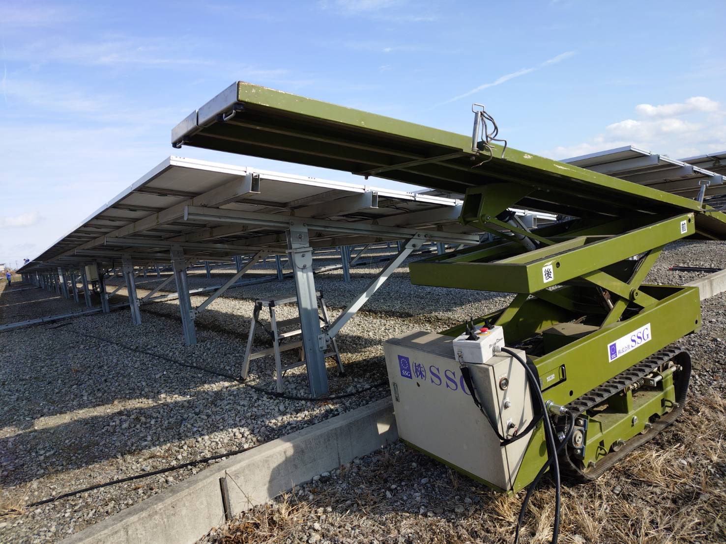ロボット専用搬送車使用で作業時間の短縮 ステージの上で機械の接続